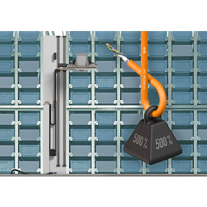 „Die Herausforderung bei hängenden Anwendungen besteht darin, dass man eine Leitung benötigt, die erstens kettentauglich ist und zweitens genug Zugkraft aufnehmen kann, um auch bei langen Wegen und großen Hubhöhen nicht zu reißen“, erklärt Christian Strauch, Branchenmanager Intralogistik bei igus. Die Leitung muss ihr Eigengewicht tragen – und das sind per Norm maximal 15 Newton pro Quadratmillimeter Hauptader. Zwar besteht die Möglichkeit, den Querschnitt zu vergrößern, das bedeutet jedoch nicht automatisch mehr Leitungslänge. Denn gleichzeitig steigt das Eigengewicht der Leitung. „Um dieses Problem zu lösen, haben wir in den PUR-Außenmantel der CFSPECIAL.192 ein hoch-zugfestes Aramidgeflecht eingearbeitet. Tests in unserem hauseigenen Labor zeigen, dass die Zugfestigkeit gegenüber einer Standard-Leitung für MOVILINK DDI 500 Prozent höher ist“, so Rainer Rössel. „Unsere neue Leitung erreicht eine Zugkraft von über 4.200 Newton und ist dadurch ideal für vertikale Anwendungen wie Regalbediengeräte geeignet.“