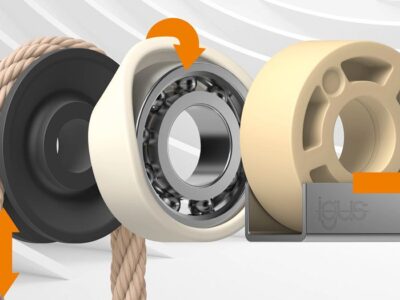 Köln, 13. Oktober 2025 – Gleich Drei auf einen Streich: igus bringt aufgrund der hohen Nachfrage neue Seilrollen, Laufrollen und Bandagen in Serie auf den Markt, die bislang nur als Sonderfertigung erhältlich waren. Gefertigt aus Hochleistungskunststoffen, sind die neuen Komponenten in zahlreichen Anwendungen eine wirtschaftliche Alternative zu klassischen Pendants aus Metall. Denn sie sind schmierfrei und schmutzunempfindlich, langlebig und wartungsfrei sowie vibrationsdämpfend und ruhig im Lauf.
