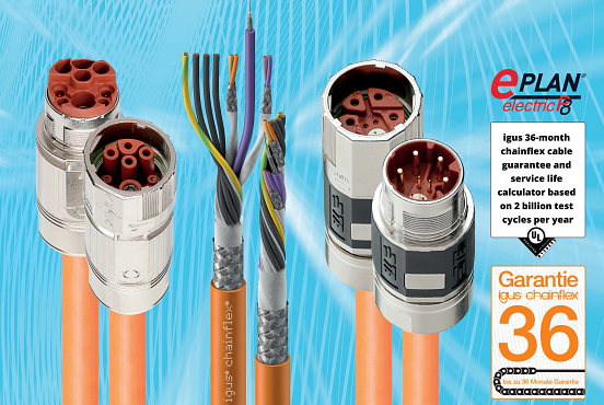 Zur neuesten Erweiterung der readycable Serie zählen zwei Modelle: Eine Hybridleitung für Motoren des deutschen Herstellers SEW-Eurodrive mit der Schnittstelle MOVILINK DDI sowie eine Hybridleitung für Servoantriebe von Siemens passend zu SINAMICS S210. Diese ist neben einem Außenmantel aus PUR auch aus dem günstigeren Polyvinylchlorid (PVC). „Schlanke industrielle Prozesse in der Konfektionierung, kürzeste Durchlaufzeiten und ein hohes Maß an Lagerhaltung machen es möglich, dass sich Konstrukteure die neuen Hybridleitungen schnell direkt ab Lager anliefern lassen können – zentimetergenau ohne Schnittkosten auf Wunschlänge gebracht, anschlussfertig und direkt einsatzbereit“, sagt Hüffel. Um weitere Projektierungszeit zu sparen, stellt igus auf der Website zudem die direkte Verlinkung zu den Makros für die Planungssoftware EPLAN Electric P8 bereit. So lassen sich die Leitungen als Bausteine per Drag-and-Drop in den digitalen Leitungsplan ziehen. Ein Vorgehen, das in der Kabelplanung bis zu 50 Prozent Zeit spart.