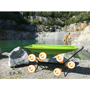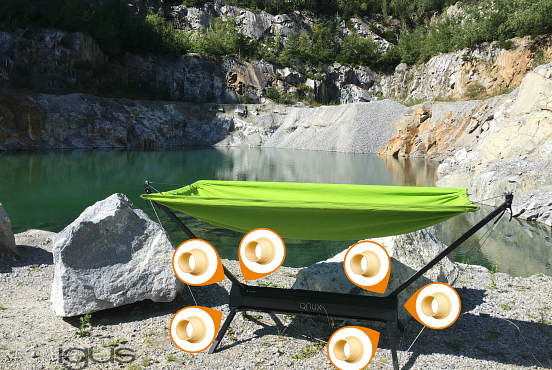 Wartungsfreie igus Kunststoffgleitlager sorgen für einen schnellen und einfachen Aufbau der Hängematte Qnux