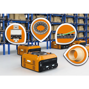 Köln, 4. September 2019 – In Zeiten der zunehmenden Digitalisierung von Fabriken und Lagern erobern Fahrerlose Transportsysteme (FTS) kontinuierlich die Intralogistik. Die Anforderungen an die Ausfallsicherheit sind dabei hoch, um kurze Durchlaufzeiten und einen ungehinderten Materialfluss sicherzustellen. FTS-Hersteller rüsten ihre Systeme daher mit motion plastics Komponenten von igus aus, welche die autonomen Fahrzeuge wartungsärmer, leichter und damit energieeffizienter machen.