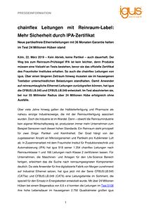 chainflex Leitungen mit Reinraum-Label: Mehr Sicherheit durch IPA-Zertifikat