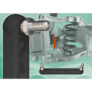 Flexibles Gehäusematerial sorgt für festes Umschließen des Kugel- zapfens und verhindert Eindringen von Schmutz in die Lagerstelle