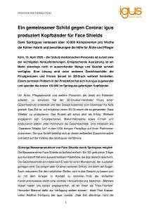 Ein gemeinsamer Schild gegen Corona: igus produziert Kopfbänder für Face Shields
