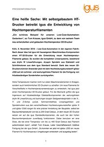 Eine heiße Sache: Mit selbstgebautem HT-Drucker betreibt igus die Entwicklung von Hochtemperaturfilamenten