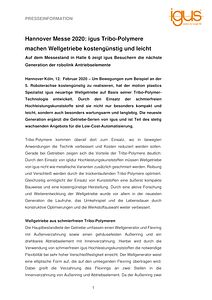 Hannover Messe 2020: igus Tribo-Polymere machen Wellgetriebe kostengünstig und leicht