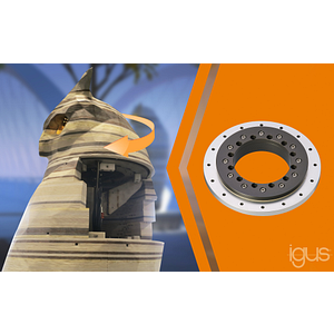 Zentraler Bestandteil des Werks ist ein Drehkranz von igus, dem motion plastics Spezialisten aus Köln. Er macht die Drehbewegung des Eulenkopfes erst möglich. Der PRT-01-300 Drehkranz ist schmier- und wartungsfrei, hält hohen Belastungen stand und verfügt über eine hohe Verschleißfestigkeit. „Das Lager, das den Kopf der Eule dreht, ist eines der elementaren Teile des Projekts – sowohl physikalisch als auch konzeptuell“, stellt Sternof Beyer heraus. „Wir hatten dabei sehr spezifische Ansprüche: Das Lager musste besonders breit sein, damit die mechanischen Bauteile und Leuchtelemente hindurchgeführt werden konnten. Außerdem musste es großen axialen und dynamischen Lasten standhalten, um keine Gefahr für das Publikum darzustellen, und trotz verschiedenen Witterungseinflüssen möglichst wartungsfrei sein. Diese spezifischen Qualitätsansprüche schlossen bereits 90 Prozent der auf dem Markt erhältlichen Lager aus.“ Die Gleitfläche der igus Drehkränze besteht aus dem Hochleistungspolymer iglidur J, das sich durch eine gute Chemikalienbeständigkeit, Schwingungsdämpfung und eine geringe Feuchtigkeitsaufnahme auszeichnet. Der Drehkranz hält einer statischen axialen Belastung von 27.000 Newton und einer dynamischen axialen Belastung von 7.000 Newton stand. „Dank des großen Außendurchmessers von 450 Millimetern war weniger Trägermaterial für die Skulptur erforderlich. Und durch den großen Innendurchmesser von 430 Millimetern ließen sich problemlos Lichtwellenleitungen verlegen, die die Eulenaugen nachts zum Leuchten bringen“, erläuterte Sternof Beyer. Drehkranzlager von igus werden in verschiedensten industriellen Anwendungen eingesetzt, beispielsweise in Handlingsystemen für Halbleiterträger, selbstdrehenden Leuchten, automatischen Schweißanlagen oder Bedienpanels für Werkzeugmaschinen. Außerdem finden sie in einer Vielzahl von Branchen Anwendung, beispielsweise in der Medizin, Verpackungsindustrie, Lebensmittelverarbeitung, Solarindustrie und in der Fördertechnik.