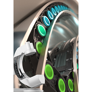 Egal ob Hightech- oder Lowtech-Einsätze: igus erforscht stetig neue Energiekettenlösungen, um den besonderen Ansprüchen industrieller Anwendungen nach Flexibilität, Sicherheit und geringen Kosten nachzukommen. Daher hat der motion plastics Spezialist mit der lokchain jetzt ein neues Konzept bestehend aus e-kette mit automatisch ausfahrbaren Verriegelungsbolzen und kompakter Führungsrinne für dynamische Energieketteneinsätze entwickelt. Die jederzeit abgesicherte Führung der Energiekette in der Rinne erlaubt einen hängenden, stehenden oder auf der Seite liegenden Einsatz des Systems mit und ohne Querbeschleunigungen. Selbst lange Verfahrwege mit bewegtem Untertrum sind durch die Fixierung der lokchain in der Obertrumrinne möglich. Auch über Kopf oder in vertikalen Kreisanwendungen kann das System installiert werden. So bietet sich der Einsatz der lokchain beispielsweise in dem kompakten Raum eines C-Bogen-Röntgengeräts an. Die Flexibilität der e-kette bietet dem Anwender die Möglichkeit zur Entwicklung völlig neuer Maschinenkonzepte.