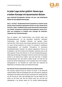 In jeder Lage sicher geführt: Neues igus e-ketten Konzept mit dynamischen Bolzen