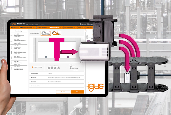 Energieketten im Online-Konfigurator von igus jetzt direkt mit smarter Zustandsüberwachung ausstatten und so unnötig frühen Austausch vermeiden