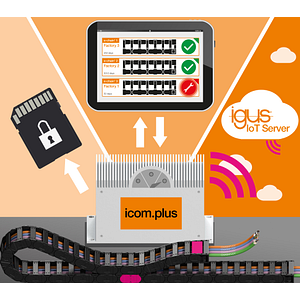 Bei bestehender Online-Verbindung der icom.plus findet ein kontinuierlicher Abgleich der Lebensdaueraussage mit der igus Cloud statt, um maximale Anlagenlaufzeiten bei minimalem Ausfallrisiko zu ermöglichen. Die Daten in der Cloud greifen auf die 10 Milliarden Testzyklen von Energieketten und Leitungen im hauseigenen 2.750 Quadratmeter großen Testlabor zurück, daher kann igus dank Machine Learning und KI genaue Angaben zur Haltbarkeit der eingesetzten Lösungen geben und den Nutzer frühzeitig über eine notwendige Ersatzbeschaffung informieren.