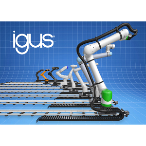 Die 7. Achse von igus ermöglicht Leichtbau-Gelenkarmrobotern mit einem Gewicht von bis zu 55 Kilogramm, ihren Aktionsradius zu vervierfachen. Die Basis ist eine bis zu 6.000 Millimeter lange Linearschiene aus Aluminium, auf der ein Schlitten über vier Buchsen aus schmierfreiem Hochleistungskunststoff gleitet – bewegt von einem Elektromotor mit Zahnriemenantrieb, der eine Geschwindigkeit von bis zu 0,6 m/s und eine Positionierungsgenauigkeit von ±0,3 Millimetern ermöglicht. Auf diesen Schlitten können Anwender ihren Roboter über ein Adapterkit montieren. igus liefert zudem passende Energieketten aus Hochleistungskunststoff, um Energie- und Datenleitungen in der Bewegung zu schützen. „Dieser Schutz ist empfehlenswert, da rund 35 Prozent der Roboterausfälle auf mangelhaftes Leitungsmanagement zurückzuführen sind“, betont Alexander Mühlens. Erhältlich ist die Achse ab 2.313 Euro, hinzu kommen weitere 2.800 Euro für die Schaltschrankintegration. Zurückzuführen sind die niedrigen Kosten unter anderem auf den Einsatz von Hochleistungskunststoffen.