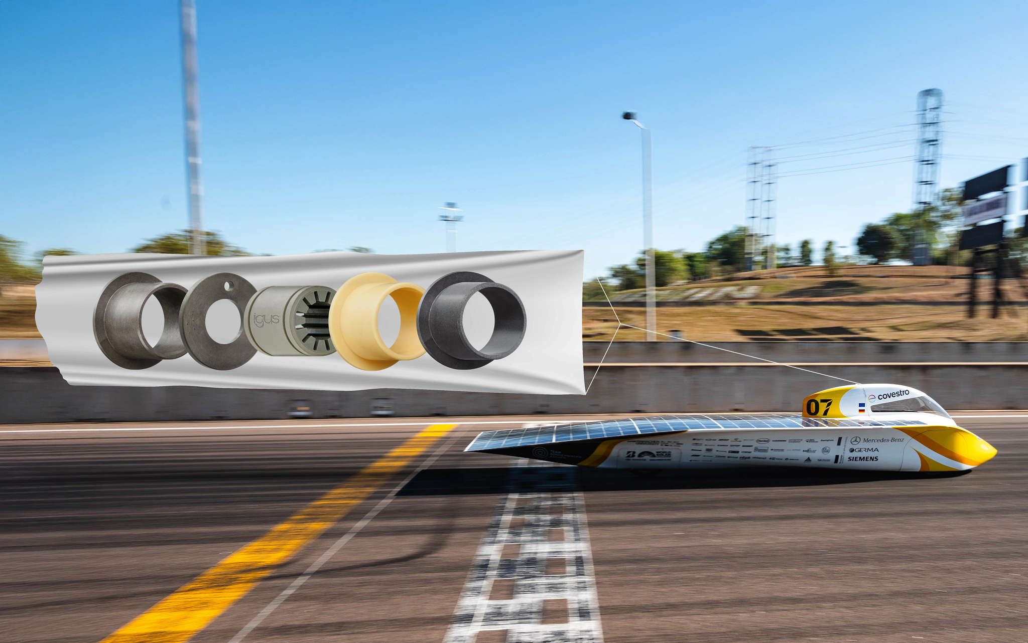 Team Sonnenwagen der RWTH Aachen und FH Aachen optimiert Solarauto mit Leichtbauteilen aus Hochleistungskunststoffen von igus