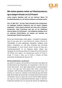 Mit motion plastics weiter auf Wachstumskurs: igus steigert Umsatz um 8,5 Prozent