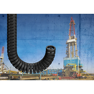 Um Öl aus der Erde fördern zu können, kommen Tiefbohranlagen mit Top Drive Systemen zum Einsatz. Für die Leitungszuführung der Systeme setzen Hersteller und Betreiber bisher auf sogenannte „Service Loops“. Diese bringen jedoch häufig einige Probleme mit sich: Die Leitungen haben keine Führung, besitzen keinen definierten Biegeradius, können sich im Service Loop bewegen und im schlimmsten Fall brechen. Bei extremen Windbedingungen kann sich der lose hängende Service Loop im Mast oder an der Sensorik sowie der Lichtanlage verhaken und abreißen. Trifft einer dieser Fälle ein und eine Leitung ist defekt, so entsteht ein weiteres Problem: Der Tausch des kompletten Schlauchpaketes steht an, denn die Leitungen sind innerhalb des Schlauches miteinander vergossen. Damit Leitungen selbst mit großen Querschnitten und hohem Gewicht in hängenden Anwendungen sicher geführt werden können, hat igus jetzt mit dem e-loop eine neue Energiekette entwickelt. Bei der Energieführung handelt es sich um ein rundes dreidimensionales modulares System, das Leitungen mit einem definierten Biegeradius zugentlastet bewegen kann.