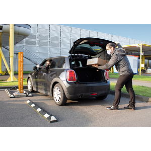 Wenn die Maschine plötzlich stillsteht oder sofort ein verschleißfestes Kunststoff-Teil für den neuen Prototypen benötigt wird, dann ist schnelle und kompetente Hilfe gefragt. Mit dem neuen Service „motion plastics to go“ bietet die igus GmbH eine Lösung für solche Ausnahmezustände an. Angelehnt an einen Drive-in hat igus daher am Hauptsitz in Köln Porz-Lind eine kontaktlose Übergabestelle eingerichtet. Nach Bestätigung der Abholung via Mail können Kunden mit ihrem Fahrzeug an der ausgeschilderten Stelle vor dem Hauptgebäude halten und sich über die Gegensprechanlage anmelden. Ohne das Auto verlassen zu müssen werden die bestellten motion plastics von einem igus Mitarbeiter direkt in den Kofferraum eingeladen. Durch den hinterlegten Barcode im Abholbeleg kann die Bestätigung des Erhalts der Ware kontaktlos erfolgen, so wird die persönliche Interaktion reduziert.