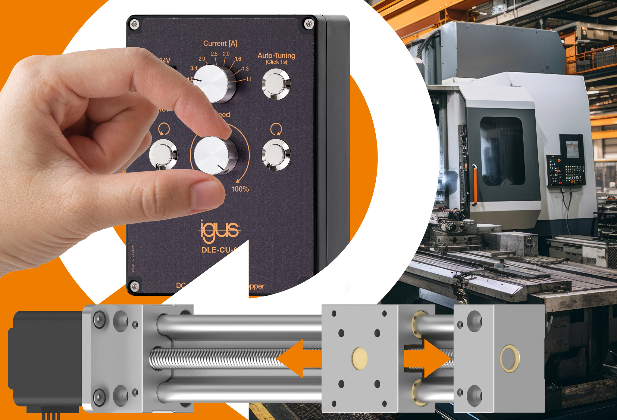 Ein Konstrukteur entwickelt eine neue Maschine für die Metallverarbeitung. Um die Funktion der Maschinentür schon vorzeitig testen zu können, benötigt er jedoch eine aufwendige Elektroinstallation sowie eine Steuerung. „Für einen Aufbau und die Inbetriebnahme ziehen in der Regel mindestens zwei Stunden Arbeitszeit ins Land. Hierbei handelt es sich um Zeit, die gerade in der Prototypenentwicklung zu wertvoll ist“, sagt Robin Gehlen, Entwickler im Geschäftsbereich drylin Antriebstechnik bei igus. „Da uns viele Anfragen nach einer zeitsparenden Lösung erreichten, haben wir ein neues Produkt entwickelt: die drylin Handsteuerung DLE-CU-9. Die Stand-alone-Lösung macht es möglich, Linearsysteme mit Schrittmotoren in rund zwei Minuten zu testen, ohne Motorsteuerung und ohne Laptop.“