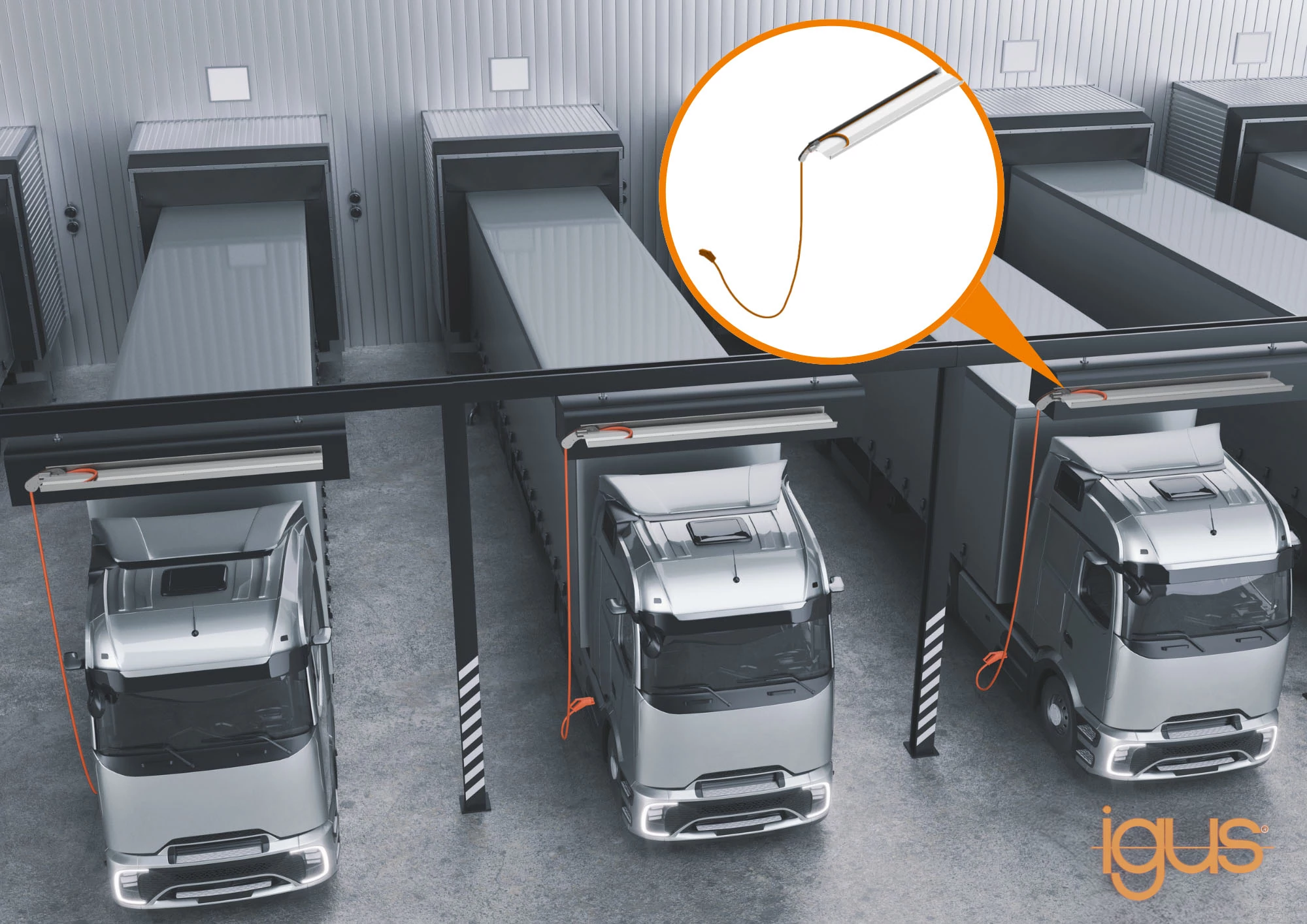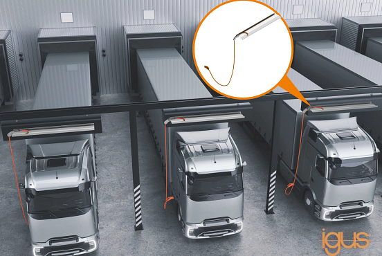 Neue Über-Kopf-Kabelführung von igus verbessert das Laden von e-Lkw und e-Pkw