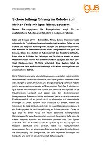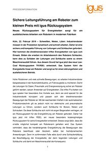 Sichere Leitungsführung am Roboter zum kleinen Preis mit igus Rückzugsystem