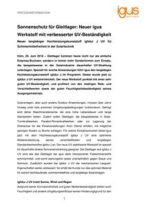 Neuer langlebiger Hochleistungskunststoff iglidur J UV für Schmiermittelfreiheit in der Solartechnik