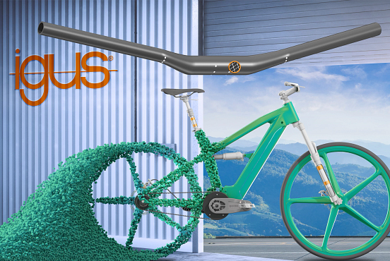 igus zeigt auf der Eurobike 2023 recycelbare und teils recycelte Komponenten für Fahrradhersteller, darunter ein Lenker, der kurz vor der Serienproduktion steht. Erster Kunde dafür ist der Fahrradhersteller Advanced.