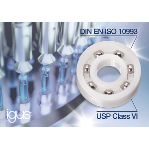Auch in der Medizin- und Pharmazietechnik ersetzen Maschinen- und Anlagenbauer Metallbauteile wie Rillenkugellager immer häufiger durch Pendants aus Hochleistungskunststoff. Der Vorteil: Kugellager der Serie xiros von igus laufen ohne Schmierung, sind wartungsfrei und trotzdem reibungsarm und hygienisch. Eine häufige Schwierigkeit: Nicht jeder Kunststoff ist überall in der Medizintechnik geeignet. So müssen Hersteller bislang oft Zeit und Kosten für die Zertifizierung neuartiger Baugruppen einplanen. „Wir investieren deshalb viel Energie in Forschung und Entwicklung, um Materialien auf den Markt zu bringen, die bereits nach den strengsten Standards der Welt zertifiziert sind. Werkstoffe, die Hersteller von Medizintechnik bedenkenlos nutzen können“, sagt Marcus Semsroth, Leiter Geschäftsbereich xiros Polymerkugellager bei igus. „Eine unserer neuesten Entwicklungen ist xirodur MT180, ein biokompatibles Material, aus dem sich leichte, hygienische und unmagnetische xiros Rillenkugellager fertigen lassen.“