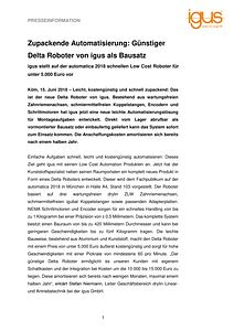 igus stellt auf der automatica 2018 schnellen Low Cost Roboter für unter 5.000 Euro vor